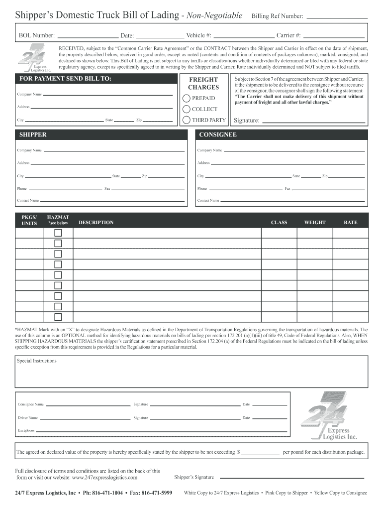 30 Blank Bill Of Lading Templates 100 FREE TemplateArchive