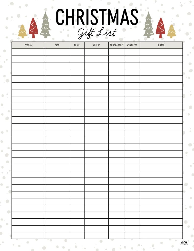 Christmas Gift List Templates 20 FREE Pages Printabulls