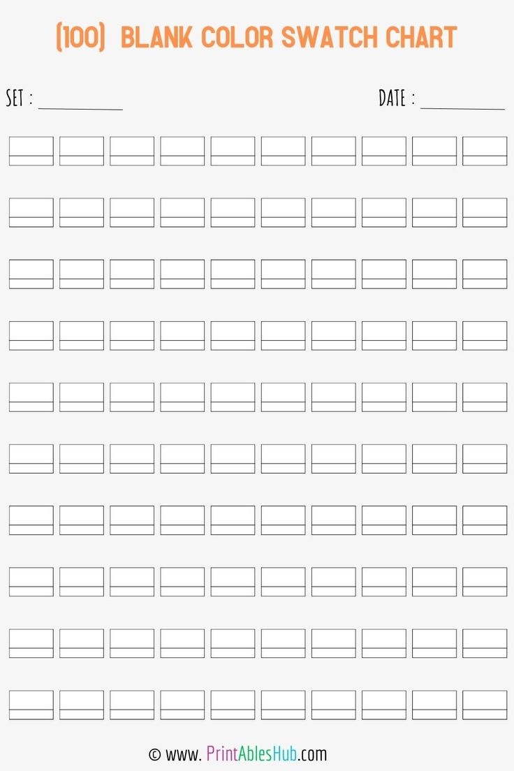 Free Printable 24 50 72 80 100 120 150 168 Blank Color Swatch Chart Template PDF