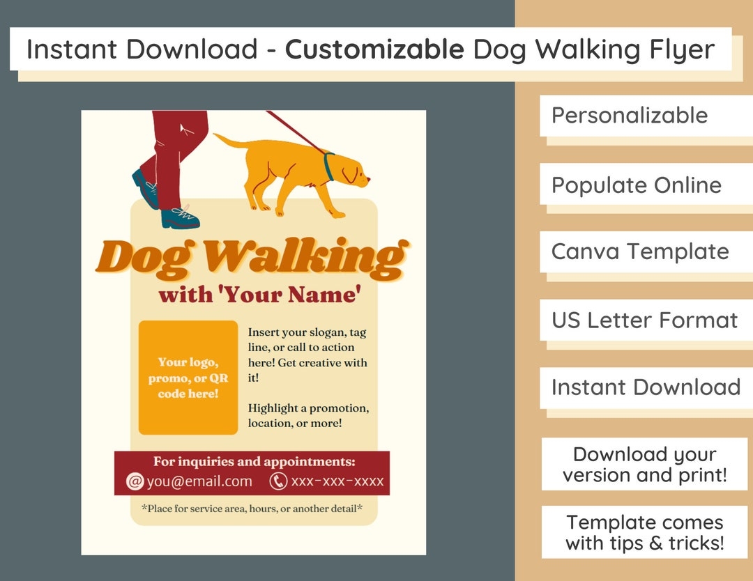 Dog Walker Flyer Dog Walking Template Canva Template Personalize Customize Instant Download Pet Services Etsy