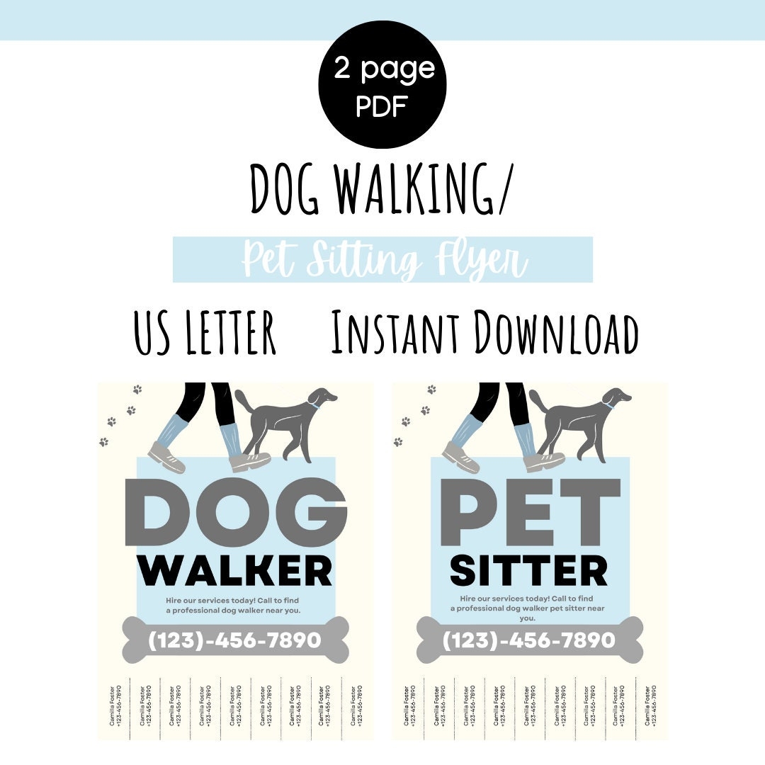 Dog Sitter Flyer Dog Walker Flyer Custom Flyer Pet Walker Flyer Editable Flyer DIY Template Business Marketing Dog Sitter Dog Walker Etsy