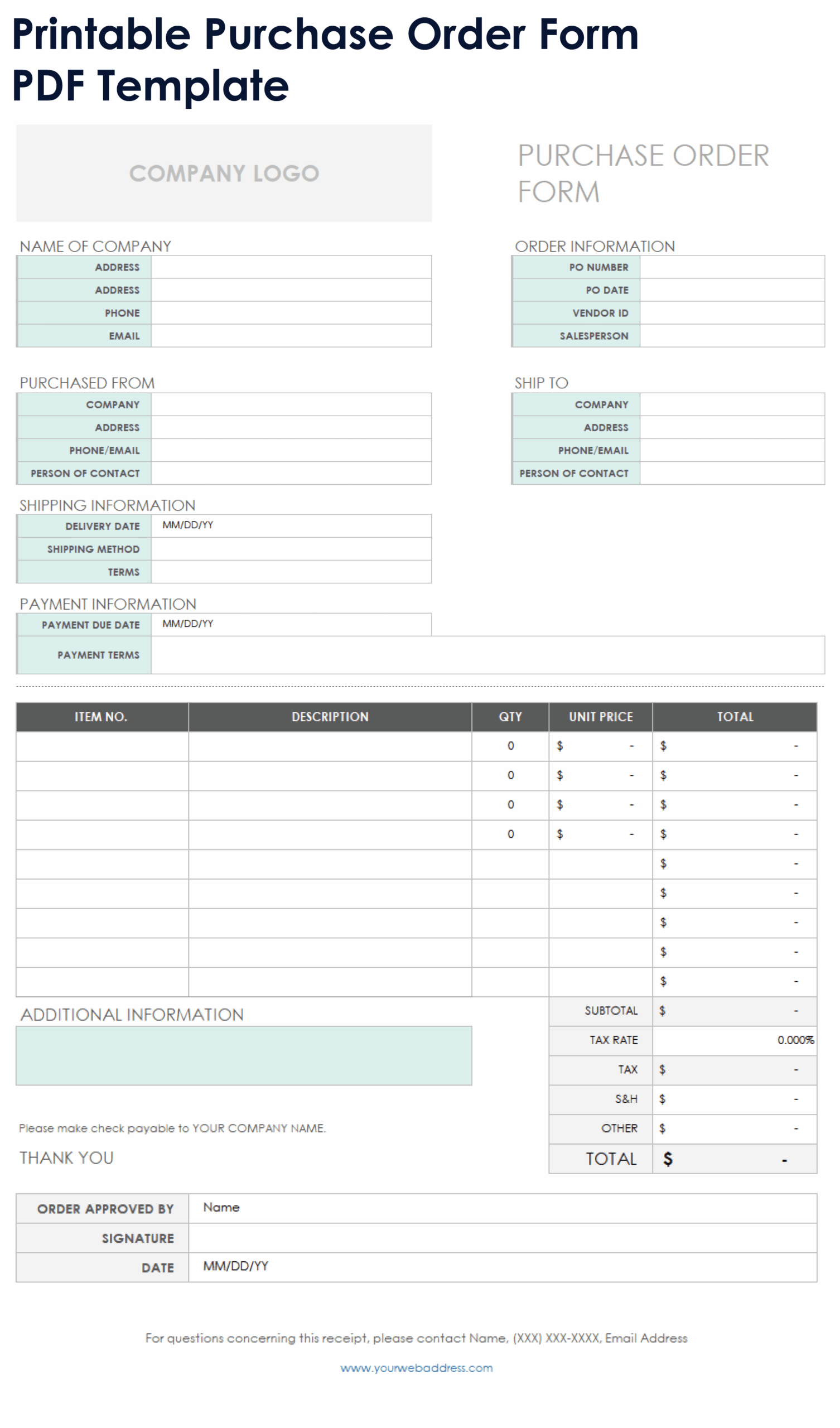 By using a standardized purchase order form, you can also ensure accuracy and consistency in your purchasing records. This can be especially helpful when it comes to budgeting, inventory management, and reconciling invoices. Plus, having all your purchase information in one place can make tax time a breeze!