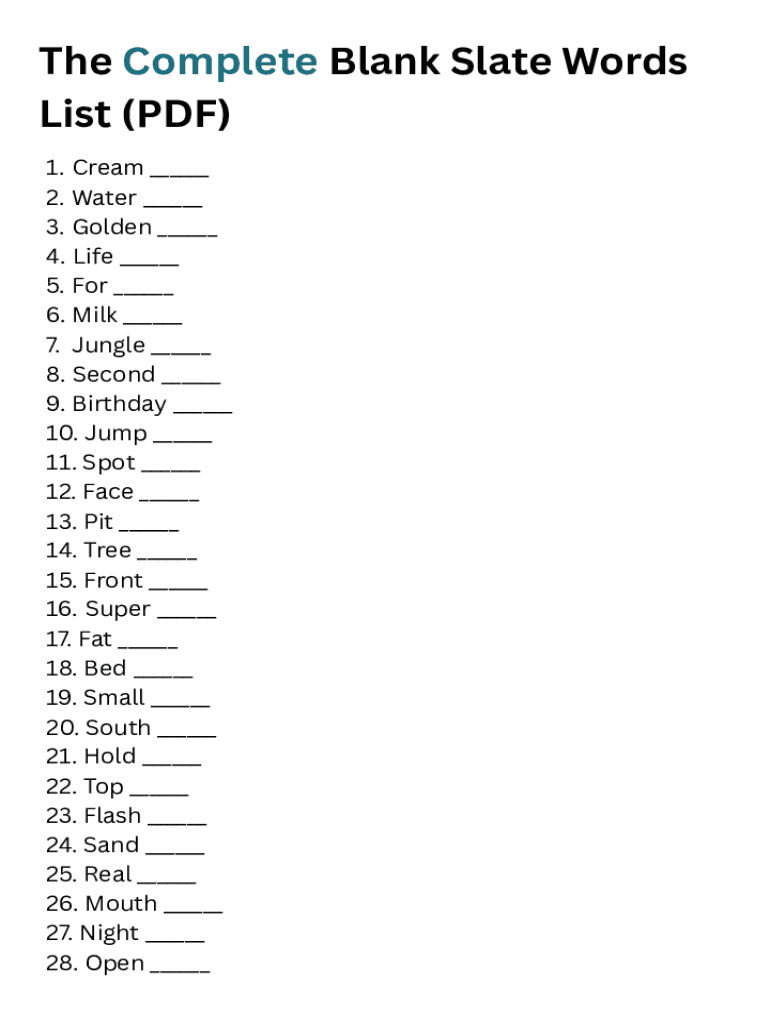 Blank Slate Game Words List Fill Online Printable Fillable Blank PdfFiller