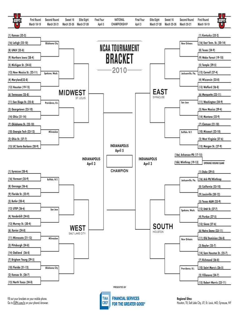 Printable Sweet 16 Bracket For The NCAA College Basketball Tournament Interbasket