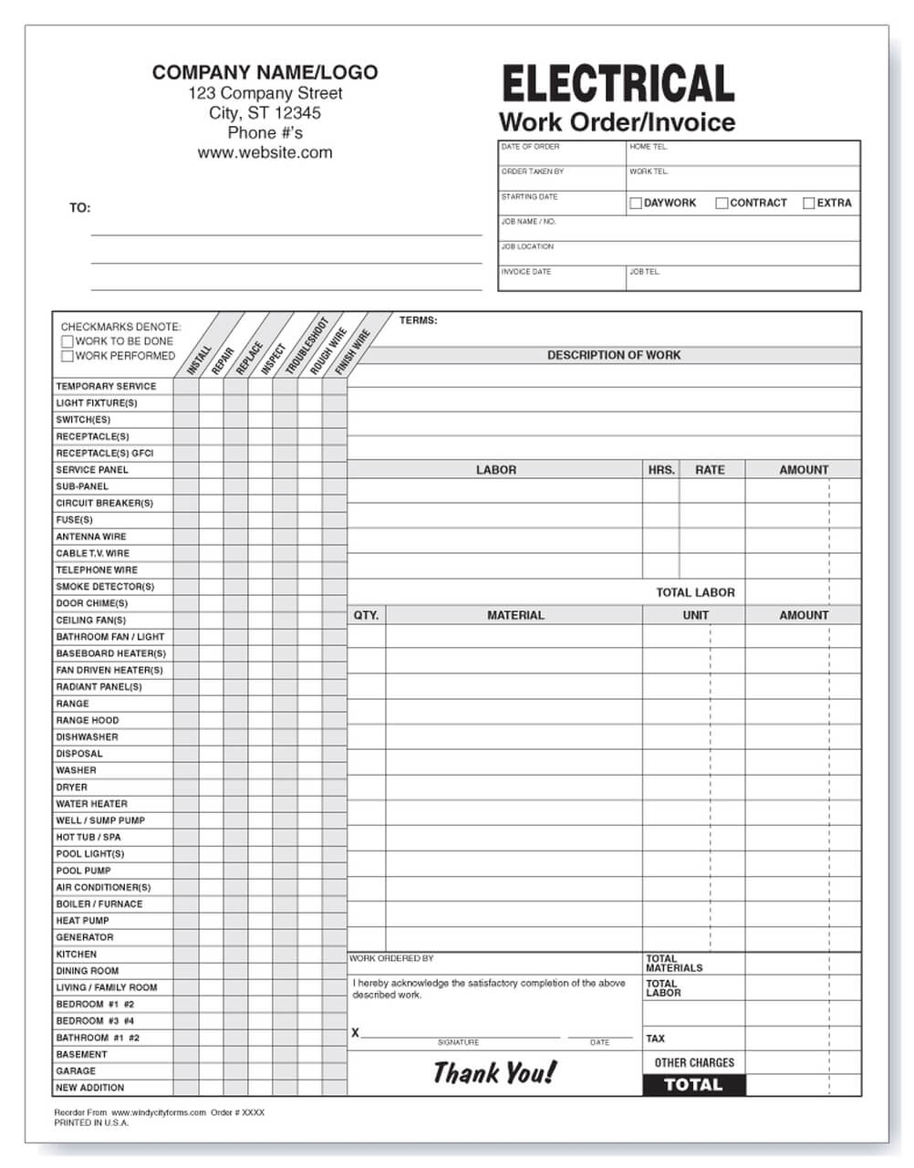 Printable Blank Work Order Form
