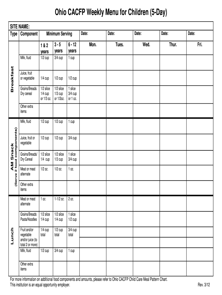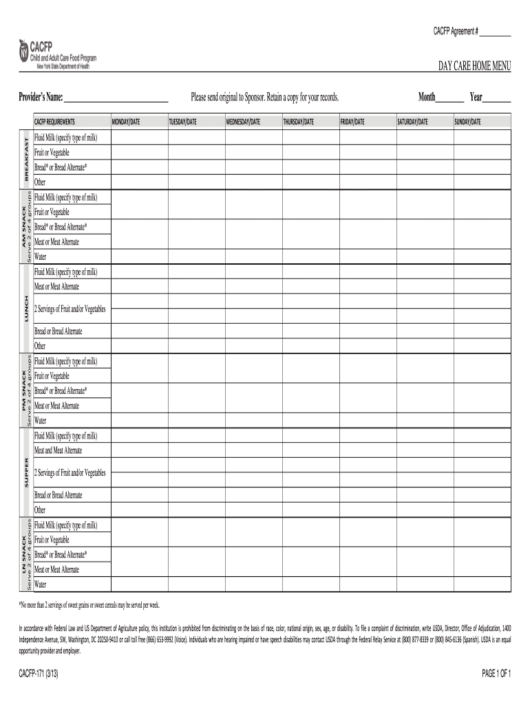 Printable Cacfp Blank Menu Forms