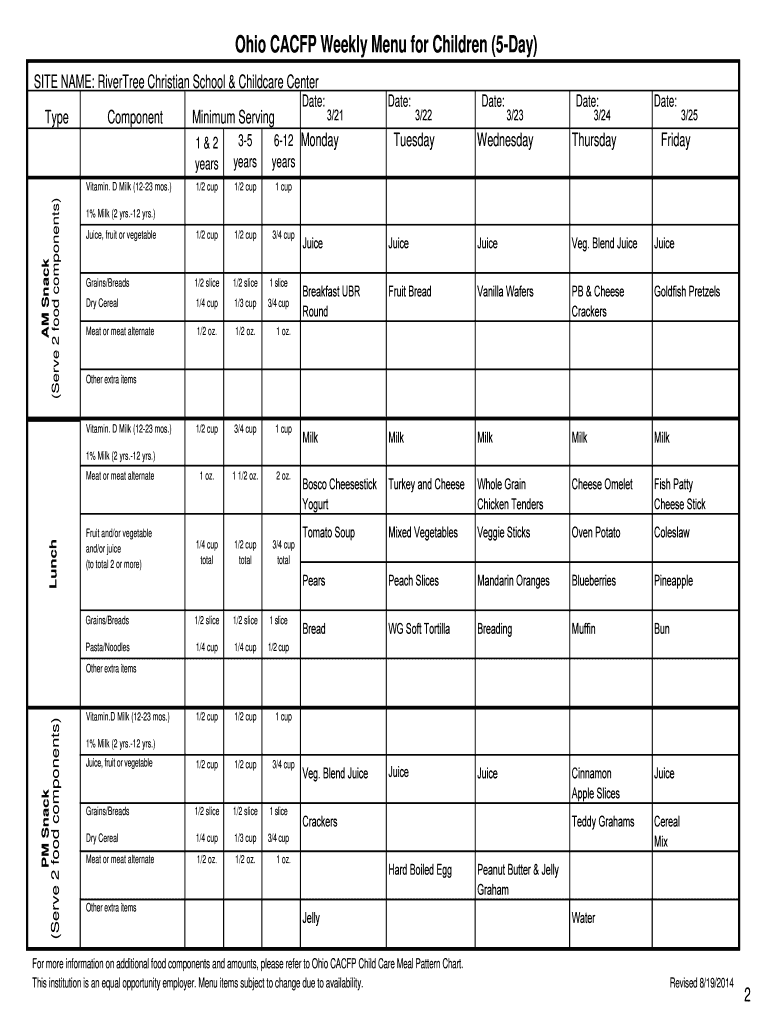 Cacfp Menu Template Fill Online Printable Fillable Blank PdfFiller