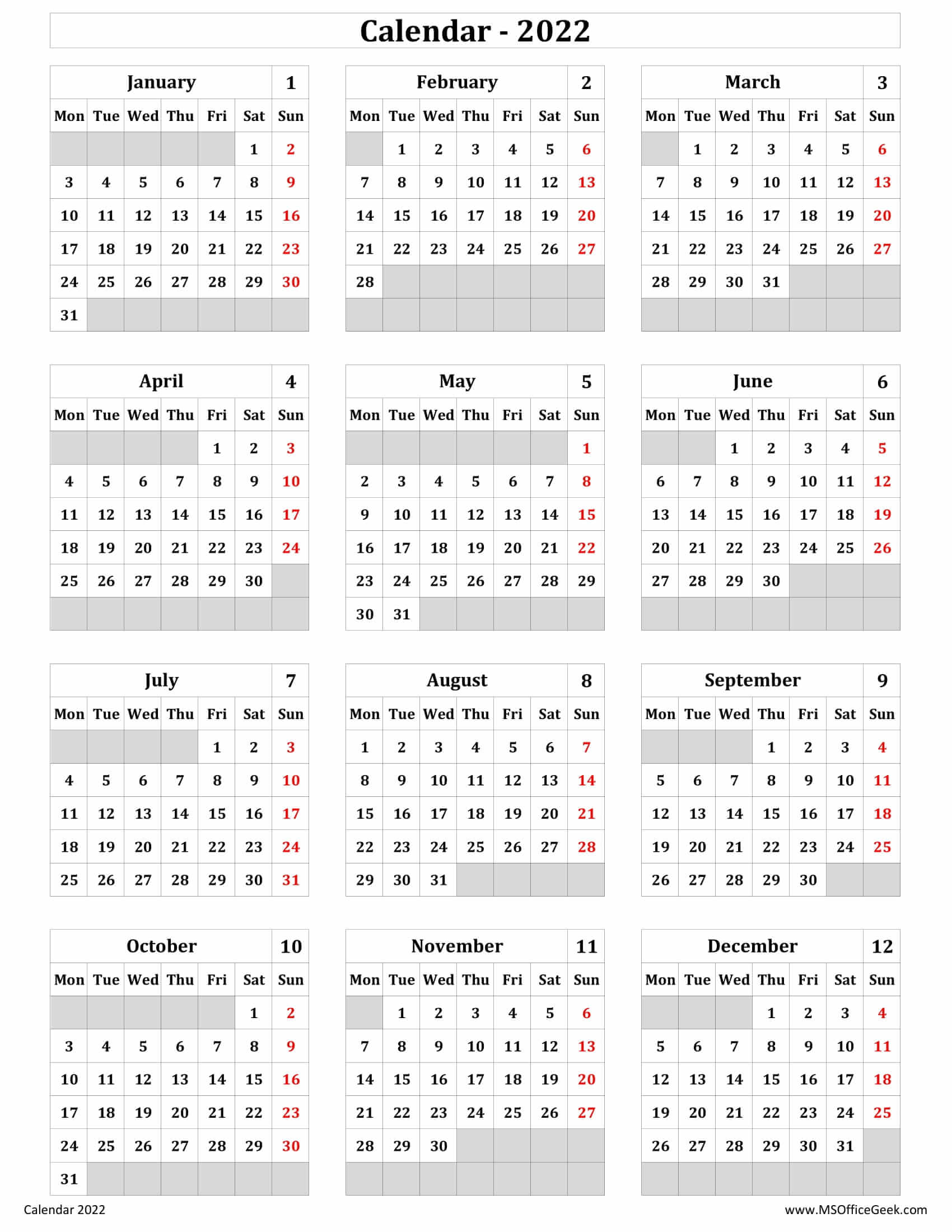 Ready To Use Printable Calendar 2022 Monday Start MSOfficeGeek