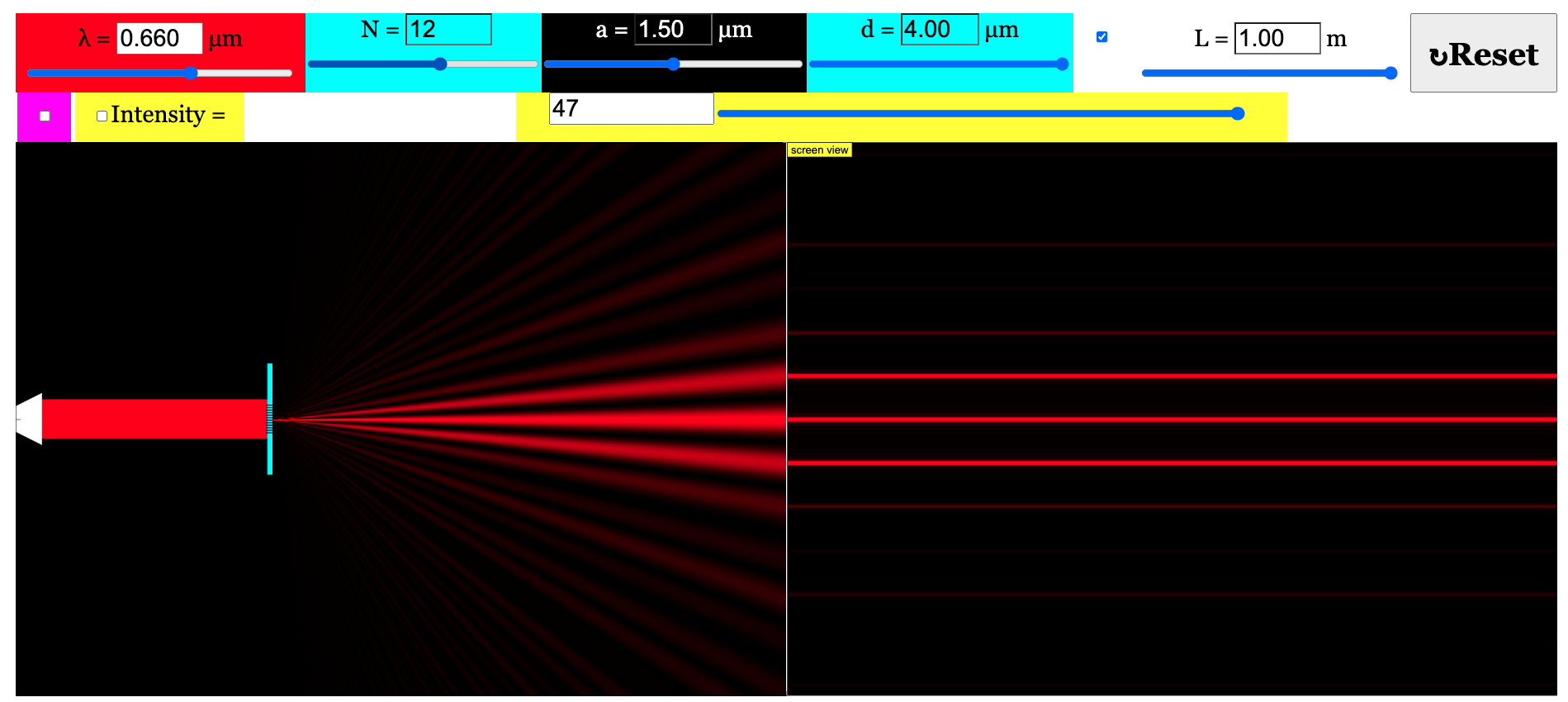 Young Double Slit Or Single Slit Or Multiple Slit Diffraction JavaScript HTML5 Applet Simulation Model Open Educational Resources Open Source Physics Singapore