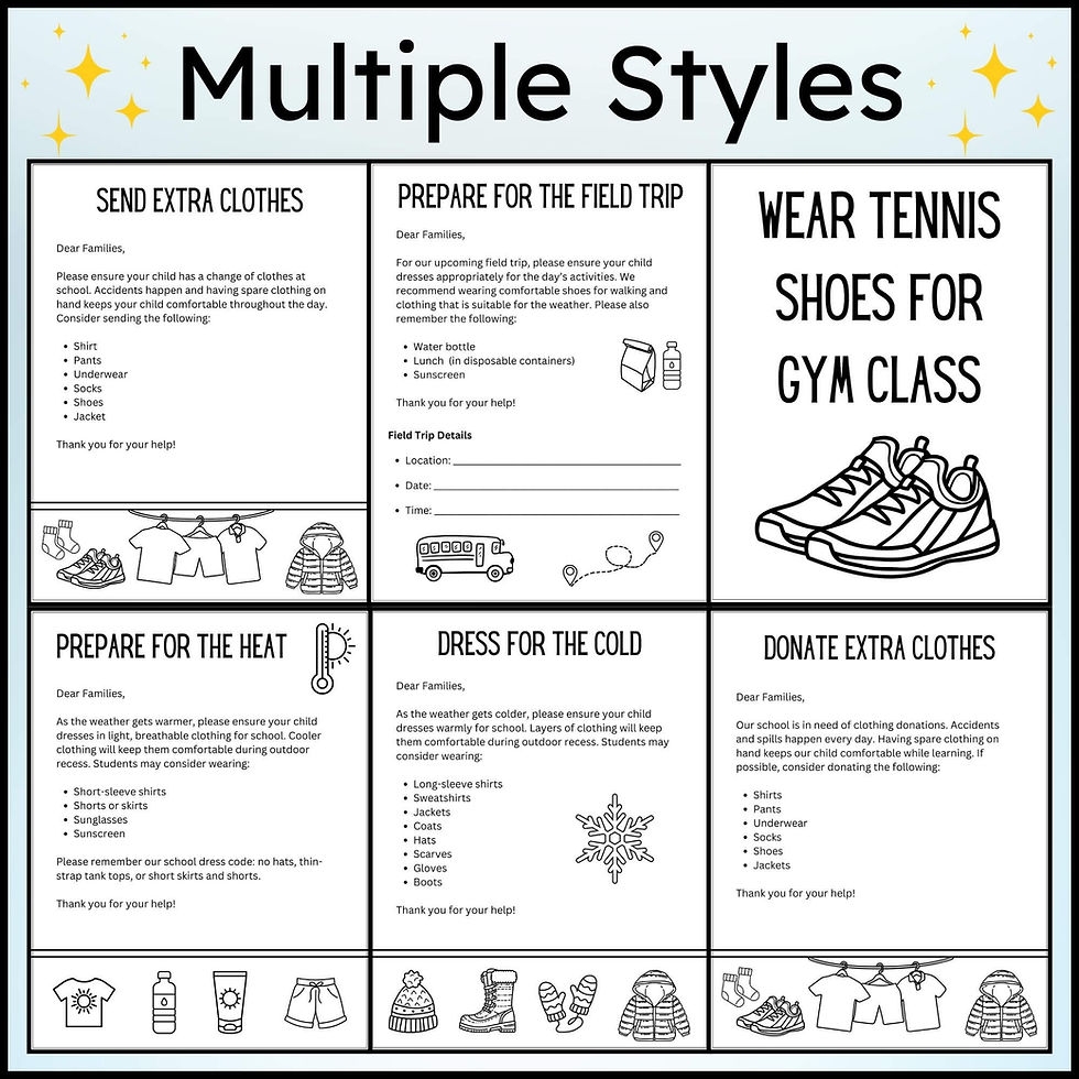 Change Of Clothes Notes Send Extra Clothing And Cold Weather Letter Editable MB Creations