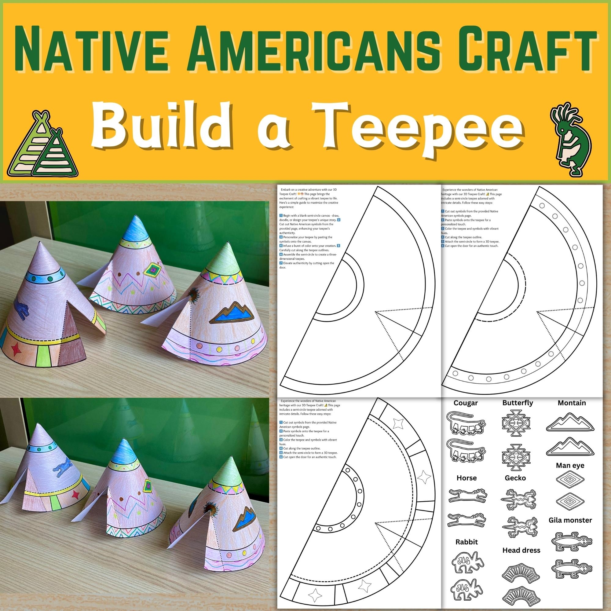 Printable Teepee Craft Native American Day Craft Activity Thanksgiving Activities Color Cut And Paste Paper Teepee PDF Etsy
